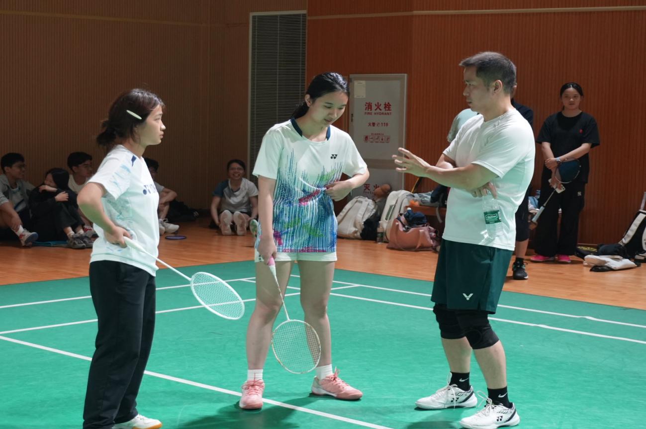 本次比赛共四支参赛队伍,项目涵盖混合双打、女子双打与男子双打,由师生搭档组队。下午两点,比赛正式开始。经抽签确定对阵后,初赛每局进行五轮激烈角逐,最终决出晋级决赛的队伍。赛场上,每支队伍从赛前默契的配合,到场上奋力拼杀、每球必争,始终沉浸在紧张而热烈的氛围中。精彩的球技引得观众席上喝彩不断。